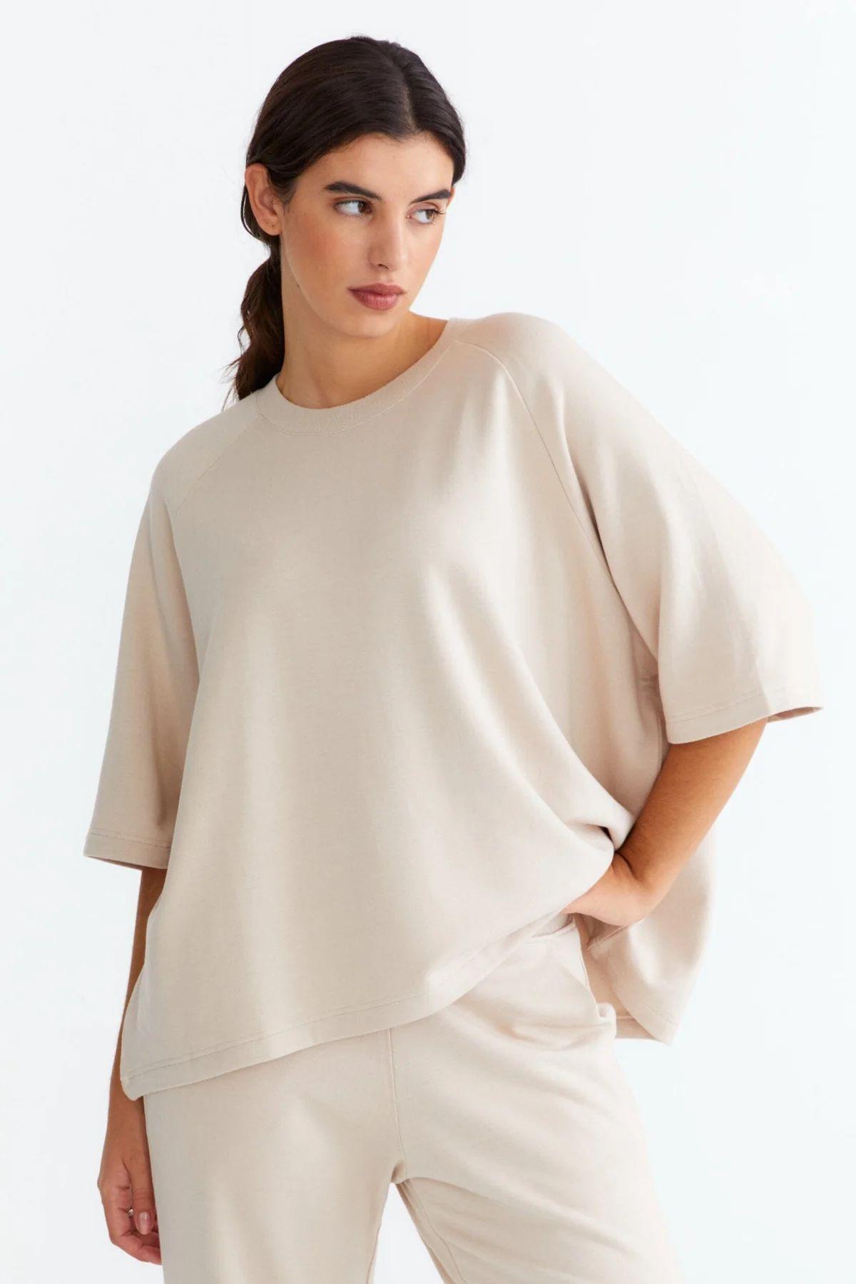 (w) T-Shirt Movesgood Happy greige
